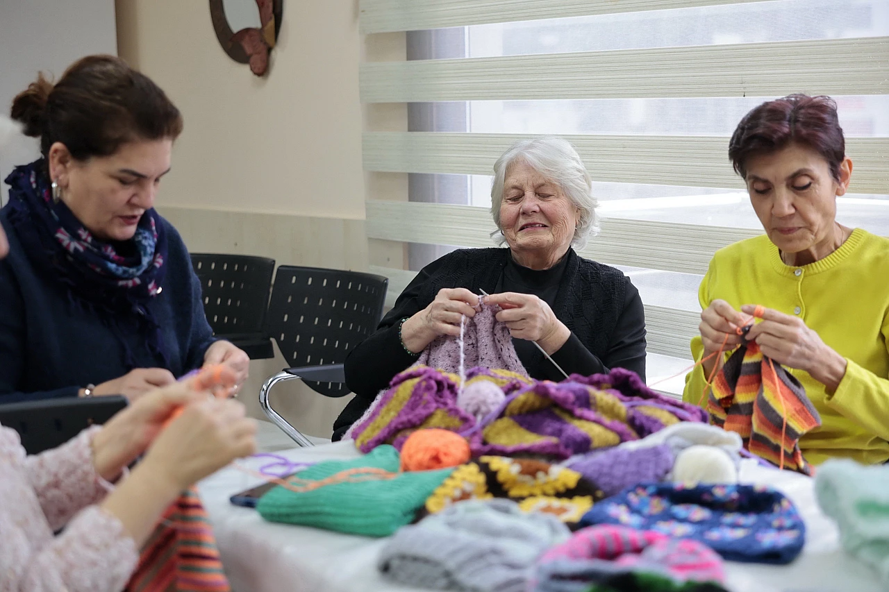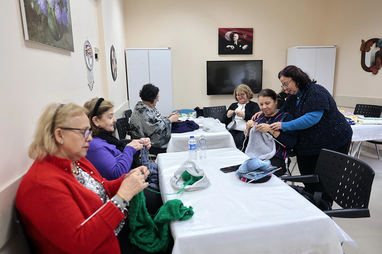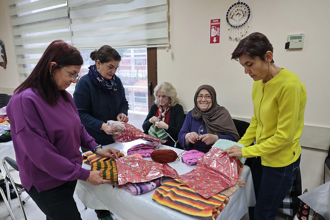 Konak Belediyesi İleri Yaş Sağlıklı Yaşam Merkezi'nde örgü ören kursiyerler, el emeği ürünleri Doğu ve Güneydoğu Anadolu'daki köy okulları ile hastanelerin onkoloji servislerinde tedavi gören çocuklara ulaştırıyor.