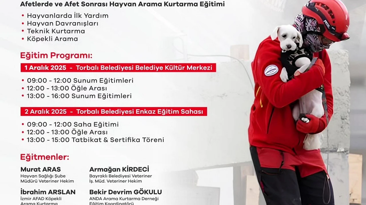 Torbalı Belediyesi, 30 ilçe belediyesinin katılımıyla hayvan arama–kurtarma alanında bölgenin en kapsamlı afet eğitim organizasyonuna ev sahipliği yapmaya hazırlanıyor.